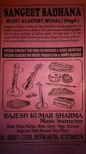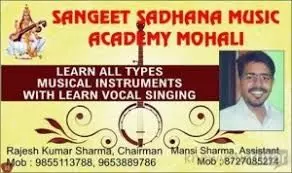 Address: House Number 1070, near Police Station, Sector 56, Chandigarh, 160047 Phone: 098551 13788 Sangeet Sadhana Music Academy Mohali is a music institute that offers a complete and comprehensive music training in Chandigarh. The academy has a team of highly trained and professional music teachers, who are always willing to share with you their knowledge, experience and passion for music. There are teaching programmes at all levels for both students and adults. The academy aims to provide the students with the best training so that they can be successful in their career in music.