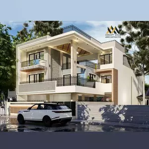 This thoughtfully designed bungalow by Concept Space Architects is tailored for a joint family living together across two generations. Nestled in the serene surroundings of Gautam Buddha Nagar, UP, the home is embraced by lush green pastures and flanked by green belts to the south and east. The design reflects a commitment to functionality, aesthetics, and minimalism, embodying a lifestyle of simplicity and grandeur. The open, spacious layout incorporates modern luxuries while maintaining a clutter-free environment. It features exclusive areas for intimate gatherings and family functions, complemented by a terrace garden with a swimming pool, perfect for relaxation and socializing. The elevation showcases a harmonious blend of modern design with traditional elements, utilizing an interplay of levels to enhance its visual appeal. This residence stands as a testament to refined living, combining elegance with practicality to create a home that truly resonates with its inhabitants' values and aspirations. This thoughtfully designed bungalow by Concept Space Architects is tailored for a joint family living together across two generations. Nestled in the serene surroundings of Gautam Buddha Nagar, UP, the home is embraced by lush green pastures and flanked by green belts to the south and east. The design reflects a commitment to functionality, aesthetics, and minimalism, embodying a lifestyle of simplicity and grandeur. The open, spacious layout incorporates modern luxuries while maintaining a clutter-free environment. It features exclusive areas for intimate gatherings and family functions, complemented by a terrace garden with a swimming pool, perfect for relaxation and socializing. The elevation showcases a harmonious blend of modern design with traditional elements, utilizing an interplay of levels to enhance its visual appeal. This residence stands as a testament to refined living, combining elegance with practicality to create a home that truly resonates with its inhabitants' values and aspirations.