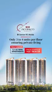 Strategically located in Sector 97 Noida, M3M Jacob & Co Sector 97 Noida is designed exclusively for high-net-worth individuals who value privacy, identity, and world-class living. M3M Jacob & Co Noida. Introducing Ultra-luxury Residential Apartments In Sector 97. Branded Home 3, 4, and 5BHK Starting from ₹7.50 Cr* M3M Jacob and Co Residences Noida has an architectural and spatial design that is based on the international norms of luxury.