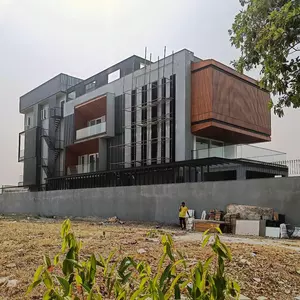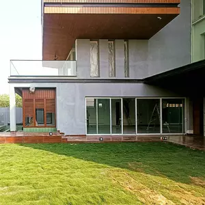 At Lakewood Residence, located in Faridabad, we’ve crafted a living space that beautifully blends natural materials with modern design principles. Our façade design showcases the warmth of wood through the use of thermopine louvers, meticulously mounted on metal C channels. These louvers do more than enhance aesthetics; they create a dynamic interplay of light and shadow, providing both privacy and ventilation. A standout feature of the residence is the striking window overlooking the serene lotus pond. This window, framed with the same thermopine and metal C channels, serves as a seamless extension of the façade’s design, connecting the interior and exterior in a harmonious visual narrative. Our material choices reflect a deep respect for nature, integrating it into the modern lifestyle. The result is a residence that resonates with its surroundings, offering a peaceful yet contemporary living experience. Stay tuned for more details on this architectural masterpiece!